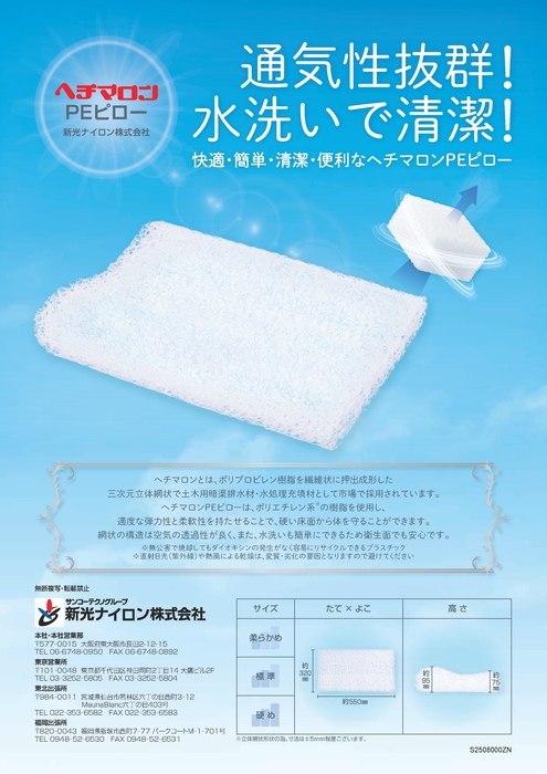 ※下記のカタログをクリック後、左上に表示される のアイコンよりPDFをダウンロードいただけます。PEマットのカタログ追加しましたマット型ヘチマロン丸型ヘチマロン♯502FシリーズヘチマロンPEマットアスコンドレーンヘチマロンPEマットヘチマロンPEピロー